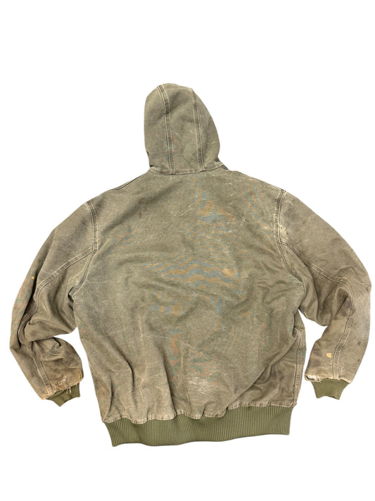 Carhartt Distressed Forrest Green Insulated Hooded Canvas Jacket Size XXL