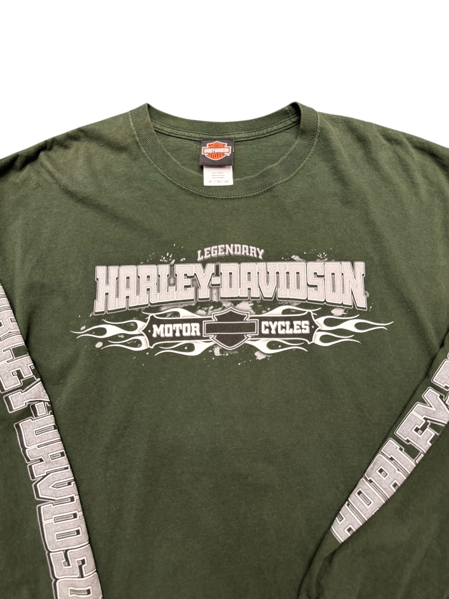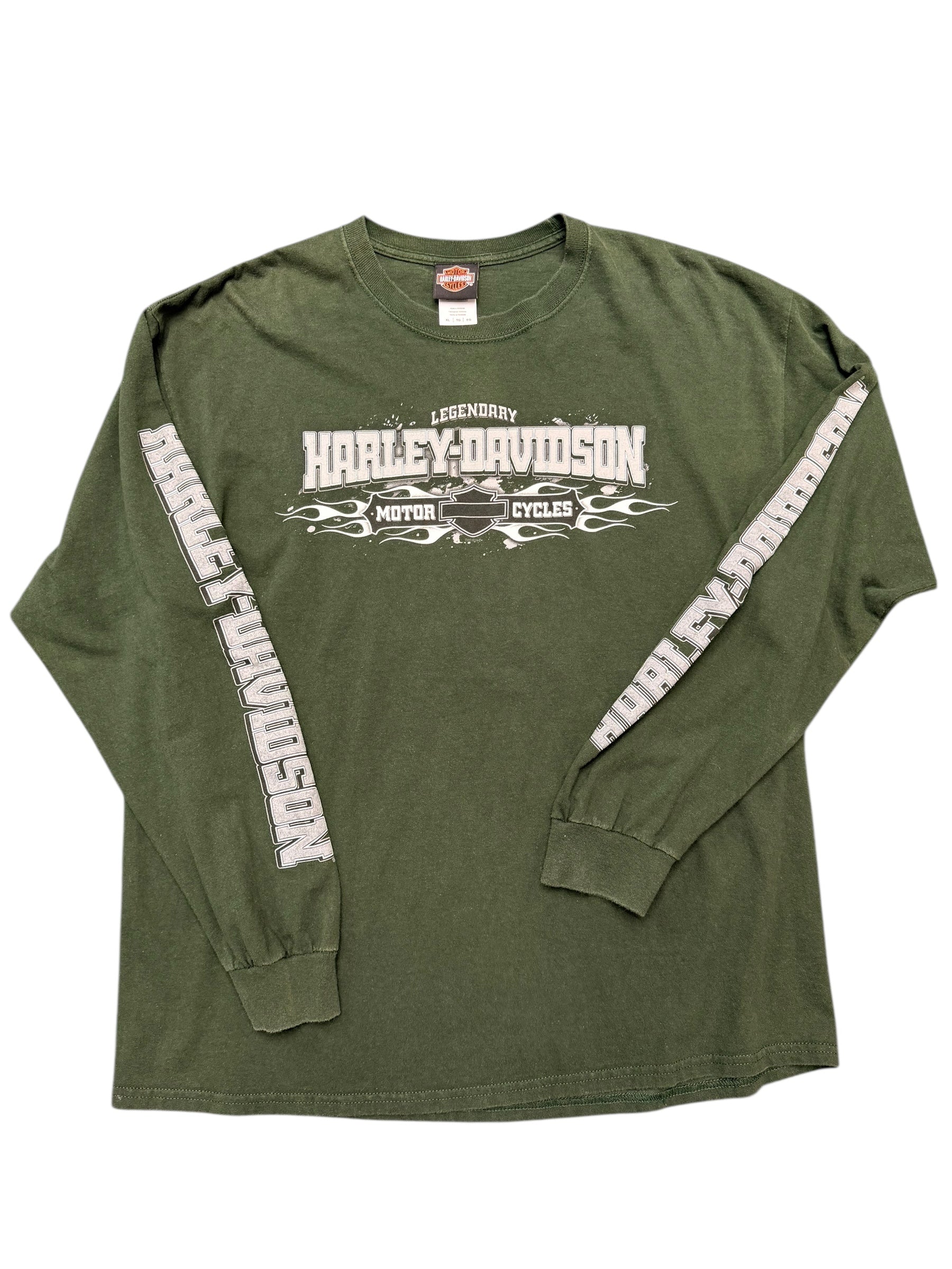 Y2K Harley Davidson Forrest Green Long Sleeve Tee Size XL